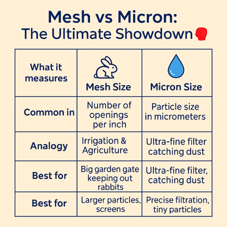 This whitepaper settles the mesh‑versus‑micron debate for the trades. It provides clear, field‑tested explanations, simple rules of thumb, and realistic examples so you can specify, install, and maintain the right filtration for irrigation systems, well water, city hookups, golf courses, and sports complexes. By the end, you will know when to use mesh, when to use microns, how to convert between them, and how to avoid costly pressure‑drop and clogging issues.